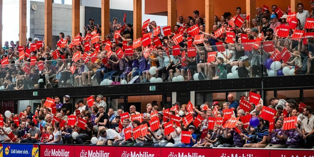 Die zahlreichen Fans können mit ihren Idolen feiern. (Bild: Floorball Thurgau)